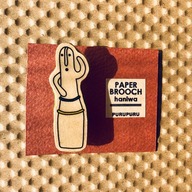 バツグンのスタイル!ビーナスの ペーパーブローチ。 お好きな土偶といつでも一緒。 紙で出来たペーパーブローチです。 紙を何枚も重ねて、防水加工もしているので、 少しの水なら大丈夫です。(水に濡れた場合は、すぐに拭いていただくことをオススメします。) 裏はフェルトになってます。 サイズ/約45mm×20mm