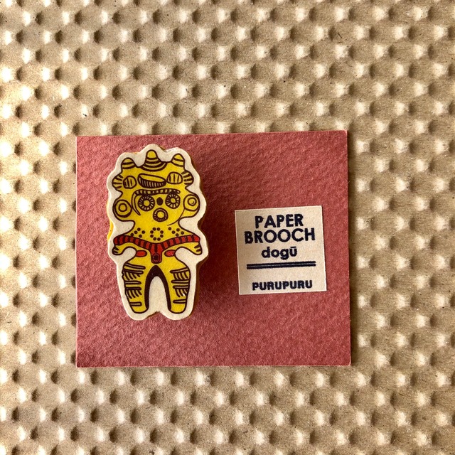 オシャレな遮光器土偶のペーパーブローチ。 お好きな土偶といつでも一緒。 紙で出来たペーパーブローチです。 紙を何枚も重ねて、防水加工もしているので、 少しの水なら大丈夫です。(水に濡れた場合は、すぐに拭いていただくことをオススメします。) 裏はフェルトになってます。 サイズ/約45mm×28mm