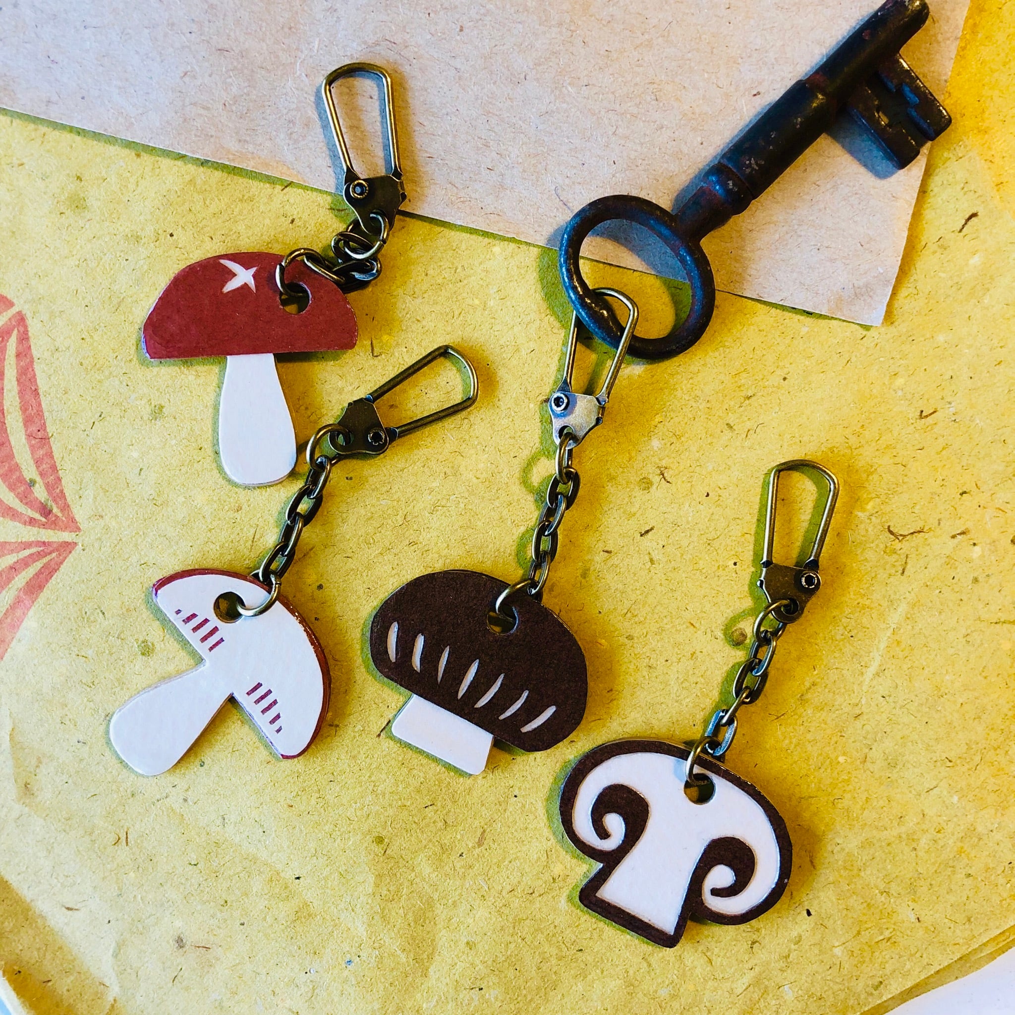 キーホルダーの裏はシイタケ断面デザインになってます。